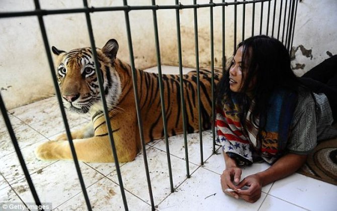 Harimau benggala tersebut sudah diasuh Sholeh sejak berumur 3 bulan dan diberi nama Mulan Jamilah.